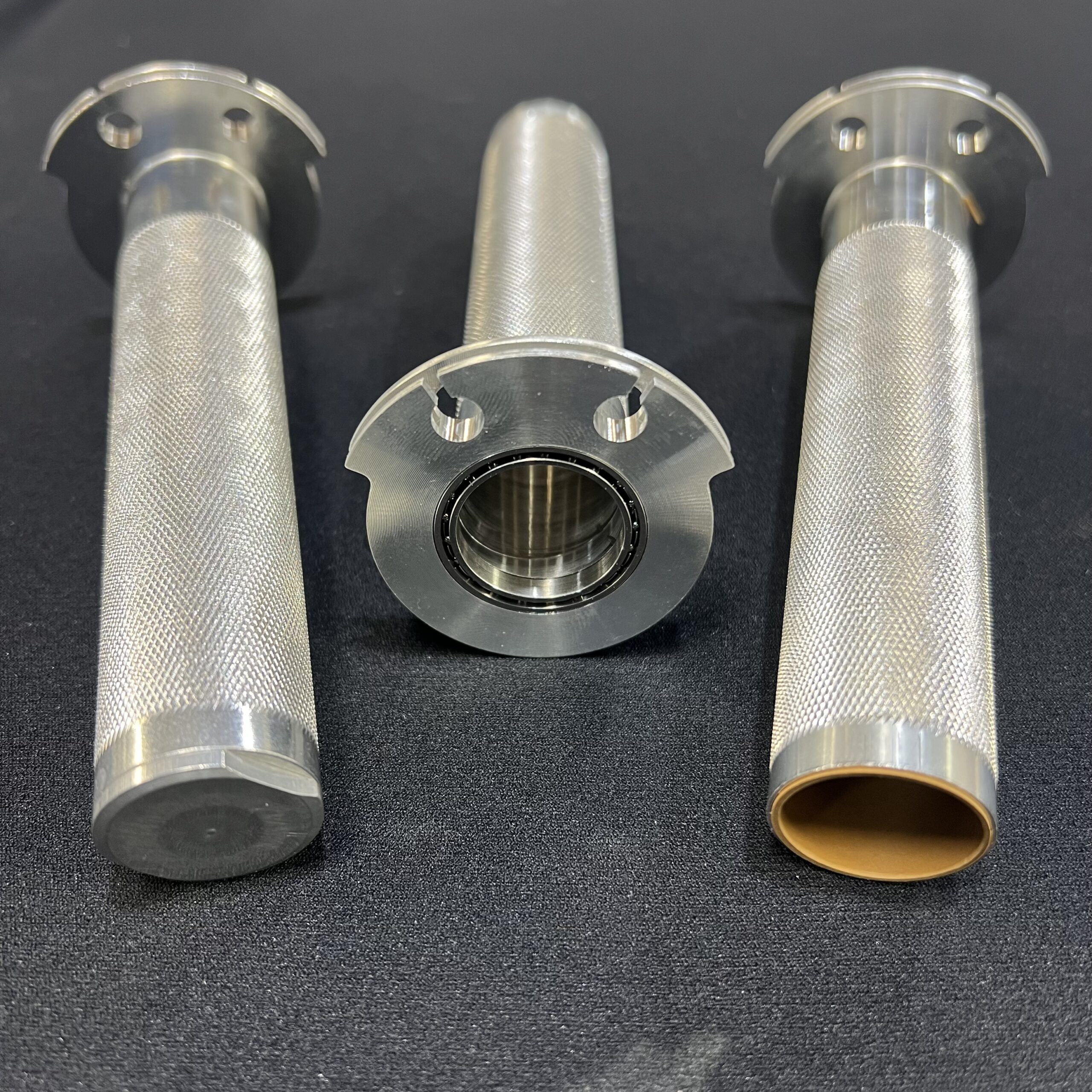 How does it work? Simply put, there are 2 radial ball bearings on each end of the tube. One located inside the throttle housing and one on the end of the handle bars. The bearing on the end of the bars gets mounted via a reveres expatiation collet design that will give the bearing a good solid connection to the handle bar. This also creates a special bottoming point for the throttle tube. When the throttle gets pushed against the bearing, the bearing in turn pushes against the handle bars. This creates a solid throttle end that cannot be damaged. And gives the throttle assembly ultra smooth action and life long longevity. This throttle assembly will be smooth for the rest or your bikes life.